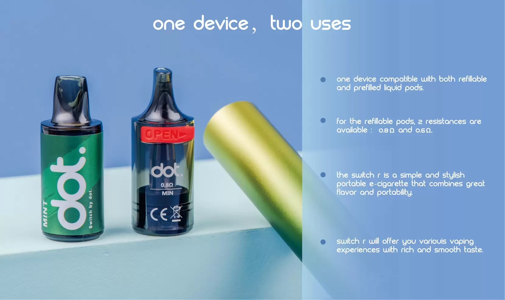 | 口味 | 小熊軟糖, 奶油菸草, 西瓜冰, 芭樂冰, 香草星冰樂, 香草菸草, 能量飲料, 草莓奇異果, 葡萄冰, 綜合水果, 蜜桃芒果, 養樂多, 薄荷, 檸檬可樂, 藍莓 |